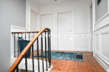 Dès l’entrée, le caractère de la maison se dévoile : hauteur sous plafond de 3,20 mètres, parquets d’origine, moulures raffinées et un escalier en bois massif qui traverse les trois niveaux avec élégance.